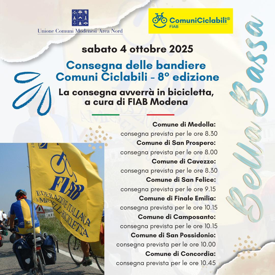 𝐒𝐚𝐛𝐚𝐭𝐨 𝟒 𝐨𝐭𝐭𝐨𝐛𝐫𝐞 il Comune di Concordia riceverà la bandiera Comuni Ciclabili da @fiabmodena.