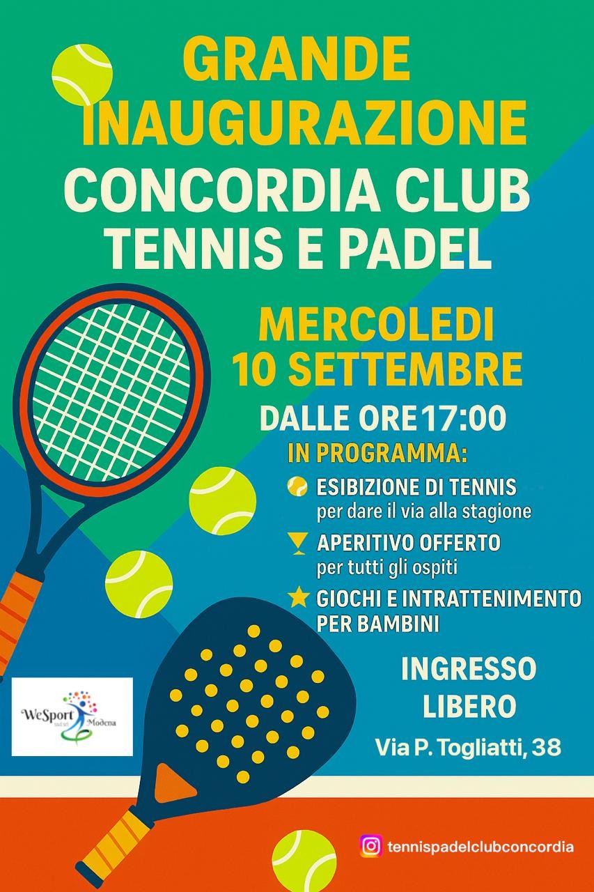 𝐌𝐞𝐫𝐜𝐨𝐥𝐞𝐝𝐢̀ 𝟏𝟎 𝐬𝐞𝐭𝐭𝐞𝐦𝐛𝐫𝐞, vieni al Centro Sportivo di Concordia in via Togliatti, dalle ore 𝟏𝟕:𝟎𝟎, per scoprire i nuovi corsi di tennis e padel in partenza il 6 ottobre con la nuova gestione di UISP Modena.