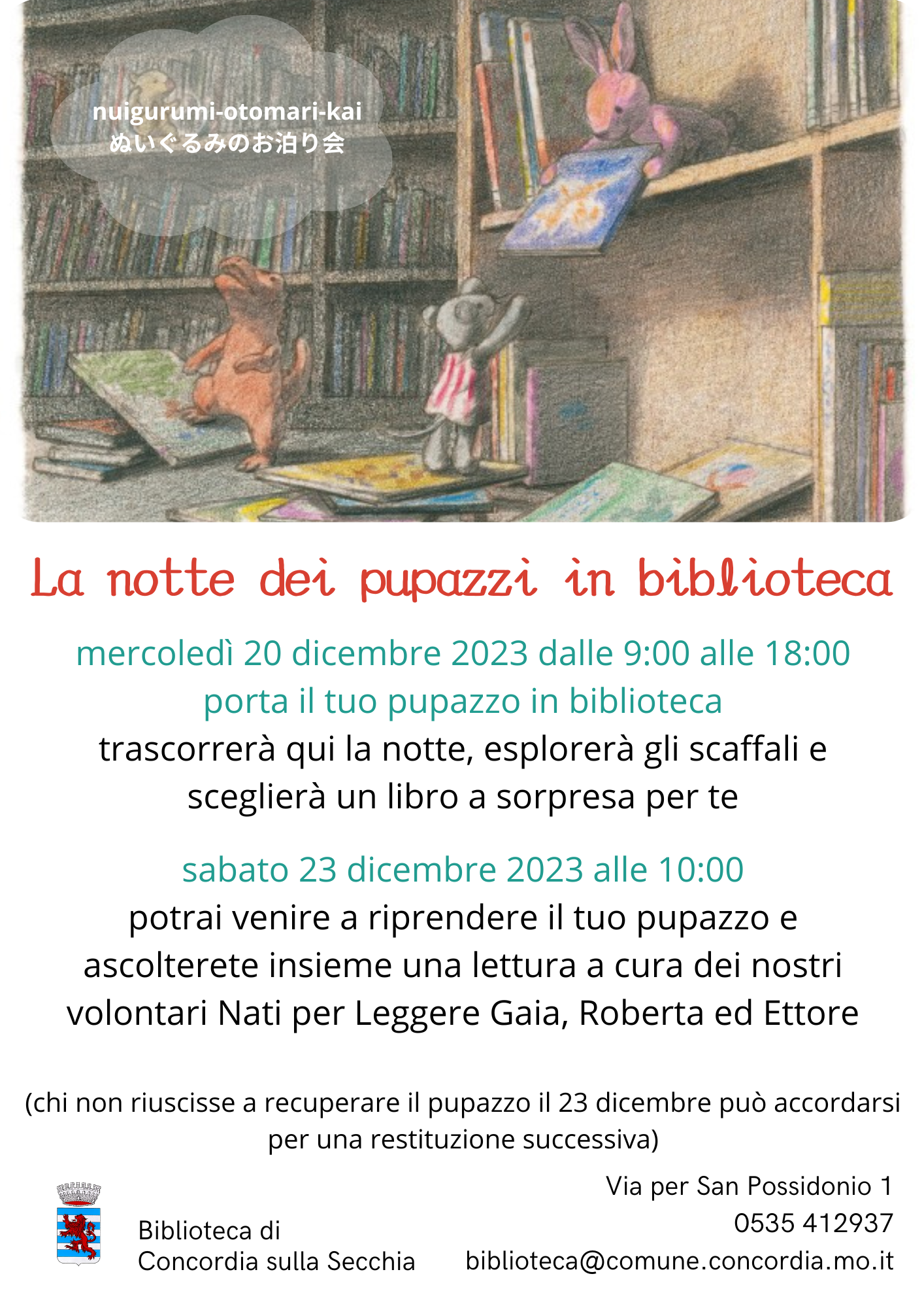 La mattina del 23 dicembre alle ore 10:00, in occasione della lettura a cura dei volontari Nati per leggere, potrete recuperare i pupazzi insieme a: