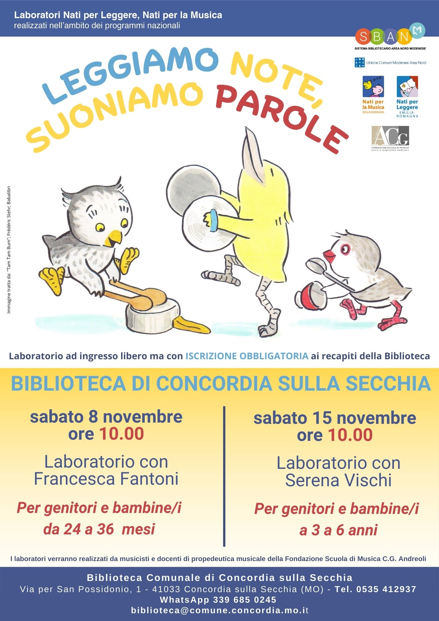 - sabato 8 novembre 2025 alle ore 10:00 laboratorio musicale per bambine e bambini da 24 a 36 mesi