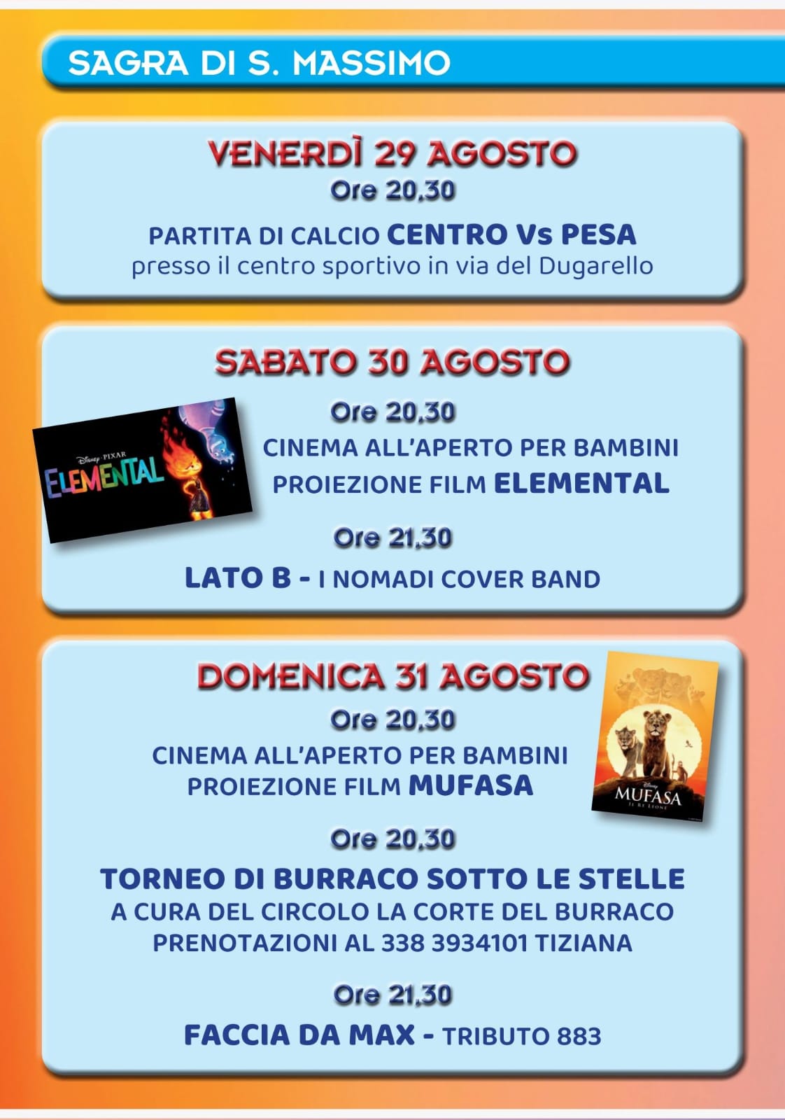 VENERDÌ 29 AGOSTO