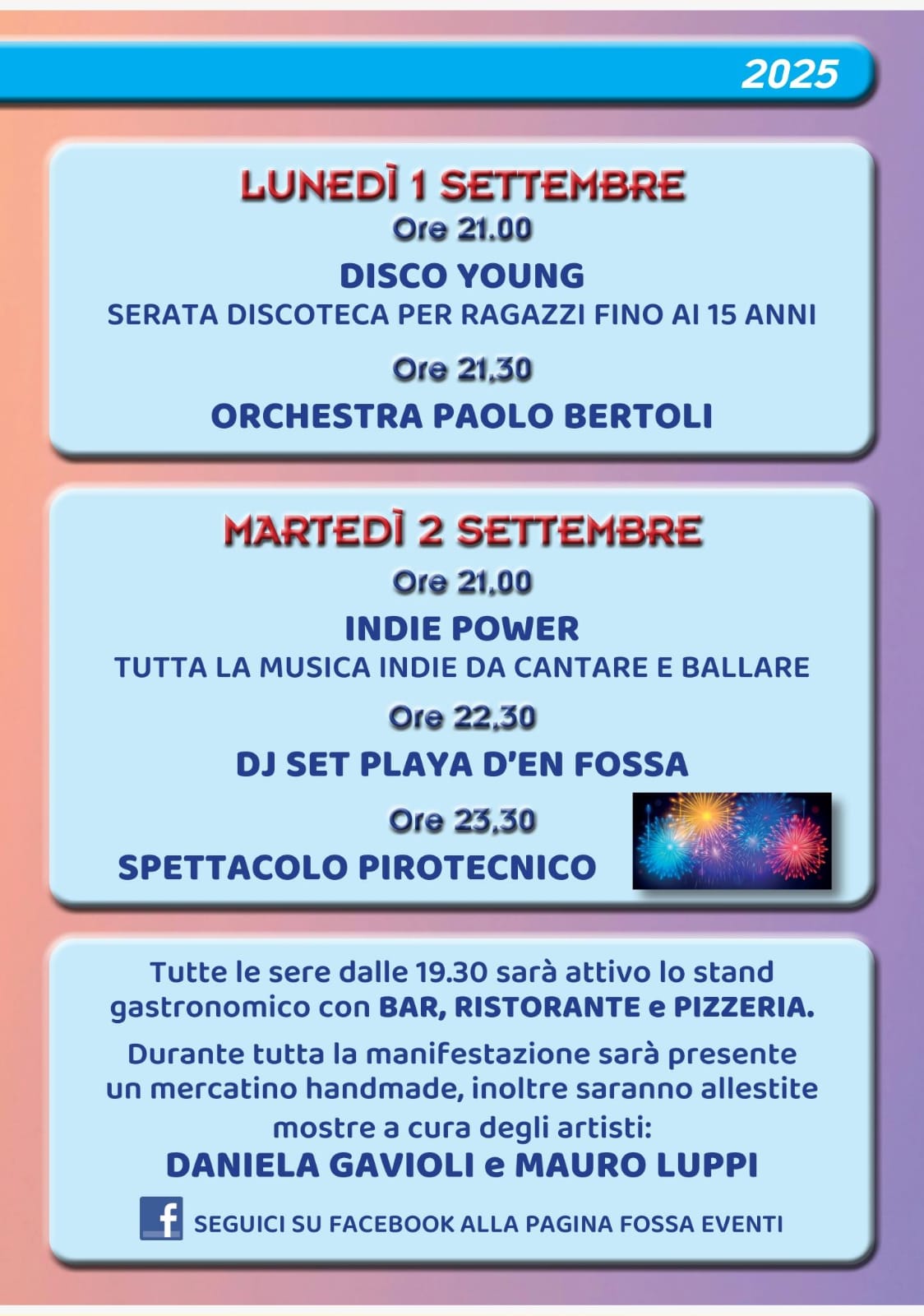 Tutte le sere dalle 19:30 sarà funzionante lo stand gastronomico con BAR, RISTORANTE e PIZZERIA